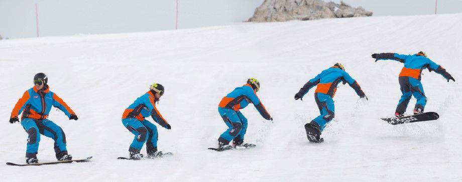 3. 3er-Schwung: Natural auf der Toesidekante anfahren – beim Stillstand mit verminderter Rotation auf die Heelsidekante umspringen – Ausfahren (Heelside)