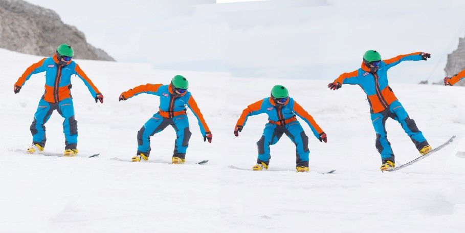 Nach einer Anfahrt in tiefer Position erfolgt ein Absprung über beide Beine, jedoch zeitverzögert. Der Abdruck erfolgt zuerst über das vordere Bein. Dadurch entsteht eine Rücklage und die Nose des Snowboards wird vom Schnee abgehoben. In diesem Moment zieht man das vordere Bein an und streckt gleichzeitig das Hintere. So kommt es zum Absprung. Durch das Mitverwenden der Arme kann mehr Höhe erzielt werden. In der Luft zieht man auch das hintere Bein wieder an. Zur Landung die Beine wieder leicht strecken, um beidbeinig abfedern zu können.
